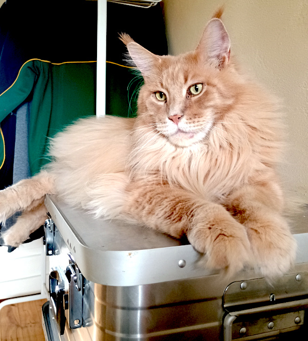 Wie sich bereits rumgesprochen haben dürfte, dümpeln wir ja außerhalb der 12 Seemeilen Zone vor uns hin um den Lauf des Weltgeschehens positiv zu beeinflussen. Natürlich geht das nicht ohne vernünftige Schiffskatzen, die unser Schiff, die Swashmark, wer hätte das gedacht, sauber halten. Welche Katzen kommen für diese Aufgabe wirklich infrage? Auch wenn es für eine Katze sicher eine Beleidigung ist - Maine Coons, die sind echte Wasserratten und fühlen sich erst ab Windstärke 10, wenn ihnen die Gischt ins Gesicht spritzt, so richtig wohl. Unser Archie und sein Bruder Angelo sind hier ein echtes Musterbeispiel. Schon von frühester Kittenheit an haben sie öfter Planken als Beton unter ihren Riesenpfoten. Die beiden sind ein unglaubliches Team. Archie, war das Kitten, was immer wegwollte. Nichts hielt ihn im Nest, nur zum Säugen gings an die Mama. Angelo das genaue Gegenteil, er hatte eine Flatrate bei der Mom und ließ es sich gut gehen. Archie ist bis heute kaum zu bändigen, will immer weg, wenn da nicht Angelo wäre, der mit seinem festen Charakter und seiner inneren Ruhe und Stärke dafür sorgt, dass Archie nicht über die Stränge schlägt. Beide sind Söhne von Crazy Bill, ein legendärer Kater.