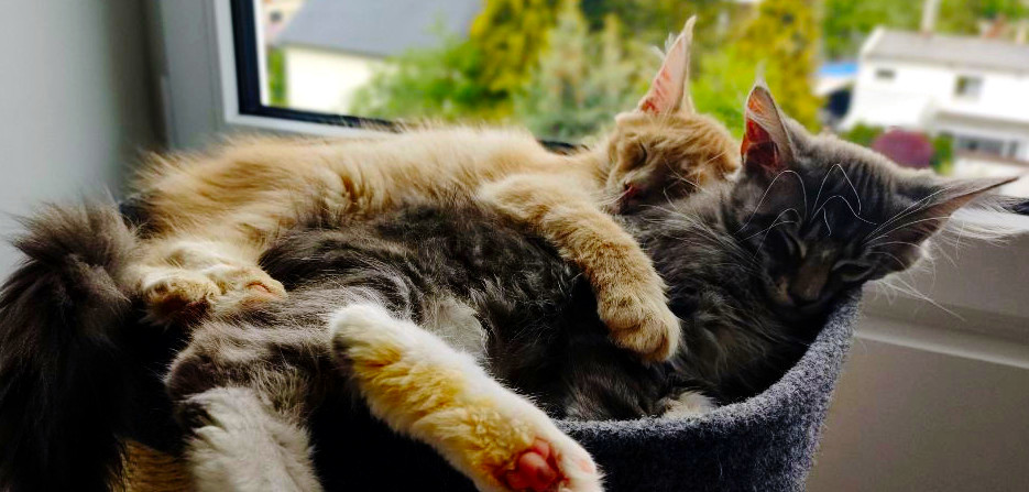 Wie sich bereits rumgesprochen haben dürfte, dümpeln wir ja außerhalb der 12 Seemeilen Zone vor uns hin um den Lauf des Weltgeschehens positiv zu beeinflussen. Natürlich geht das nicht ohne vernünftige Schiffskatzen, die unser Schiff, die Swashmark, wer hätte das gedacht, sauber halten. Welche Katzen kommen für diese Aufgabe wirklich infrage? Auch wenn es für eine Katze sicher eine Beleidigung ist - Maine Coons, die sind echte Wasserratten und fühlen sich erst ab Windstärke 10, wenn ihnen die Gischt ins Gesicht spritzt, so richtig wohl. Unser Archie und sein Bruder Angelo sind hier ein echtes Musterbeispiel. Schon von frühester Kittenheit an haben sie öfter Planken als Beton unter ihren Riesenpfoten. Die beiden sind ein unglaubliches Team. Archie, war das Kitten, was immer wegwollte. Nichts hielt ihn im Nest, nur zum Säugen gings an die Mama. Angelo das genaue Gegenteil, er hatte eine Flatrate bei der Mom und ließ es sich gut gehen. Archie ist bis heute kaum zu bändigen, will immer weg, wenn da nicht Angelo wäre, der mit seinem festen Charakter und seiner inneren Ruhe und Stärke dafür sorgt, dass Archie nicht über die Stränge schlägt. Beide sind Söhne von Crazy Bill, ein legendärer Kater.