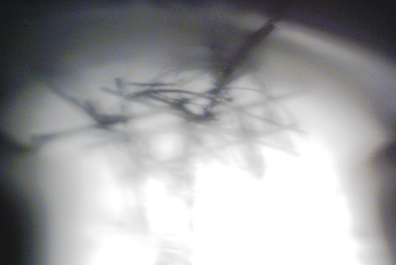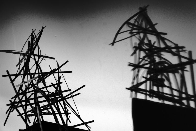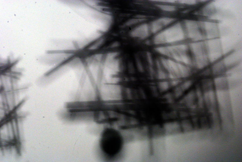 Die Hand zur Faust geballt, seitlich mit dem Handschuh, die dem Daumen abgewandte Seite der Hand, wieder und wieder. Die Faust setzt oben an, beschreibt kleine Kreisbewegungen, die auf der horizontalen Ebene ausfransen, eine Form mit weichen Ausfransungen, dann zieht der Handschuh kurvenartig in die untere Ecke, der Belag ist glatt, feucht, die Hand rutscht nicht in einer Linie, ein Bogen, der sich nach unten verengt, es sieht aus wie eine hohe, schlanke Welle, die sich gerade bricht, es erinnert an die Darstellung der Brandung, von sturmumtoster See im Manga, in Final Fantasy, kaum ist die Bewegung beschrieben - zerläuft der Rand, Tropfen bilden sich, die Wolle des Handschuhs ist feucht. Es begann zu regnen, von außen schlugen die Tropfen gegen die Welle und konnten sie nicht erreichen, sie gaben der Wischwelle eine Textur, die sich wieder aus zerrinnendem Wassser zusammensetze. Sie will uns fressen, diese Mangawelle, gerade ins Fenster gewischt, ich blickte hinaus, wischte wieder frei, was erneut beschlug.