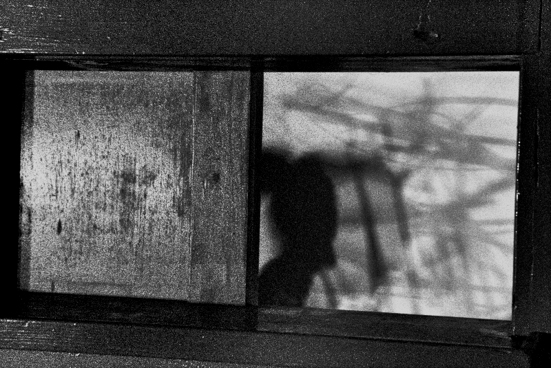 swashmark.com, 6 Monate Langzeitperformance / 6 Month long term performance / "vorübergehend" / "temporary" / April-Oktober 2010 / Vogelsang, Erinnerungszentrum / Vogelsang, Place of Remembrance / Schleiden-Gemünd, Germany / finally 1 of 3 hand scratched Windows of Nazi Building, Names of demonized Authors 1933-1945, View over Eifel Landscape through open window, what is now impossible with closed windows. You can only see the landscape through the names which "appear" while the window was scratched blind. Part II of "Asche"