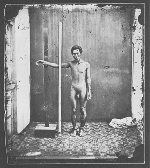 Die fotografische Abbildung fremder Länder und deren Bewohner im populären Raum jener Zeit war allerdings noch von weiteren wissenschaftlichen und populärwissenschaftlichen Motiven und Darstellungsweisen geprägt. Vom 19. bis ins 20. Jahrhundert hinein blieb die Anthropometrie, die wissenschaftliche Vermessung des menschlichen Körpers, eine der wichtigsten Methoden in der Anthropologie (Abbildung 2).
